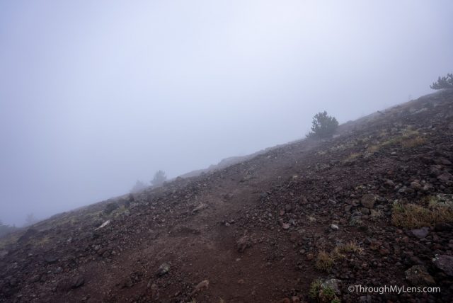 The wind blew in the fog, so we went in and out of the clouds with different levels of visibility as we continued up.