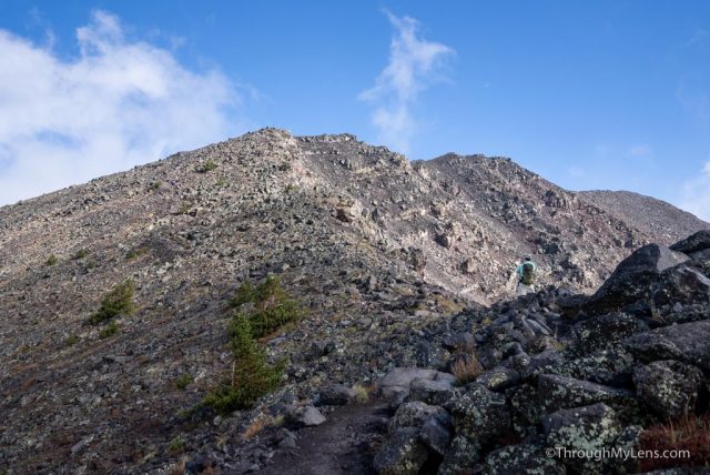 From the saddle, the trail really begins to get tough. There is only around a mile left, but the mile is steep uphill with loose rocks and even some steep stone steps.